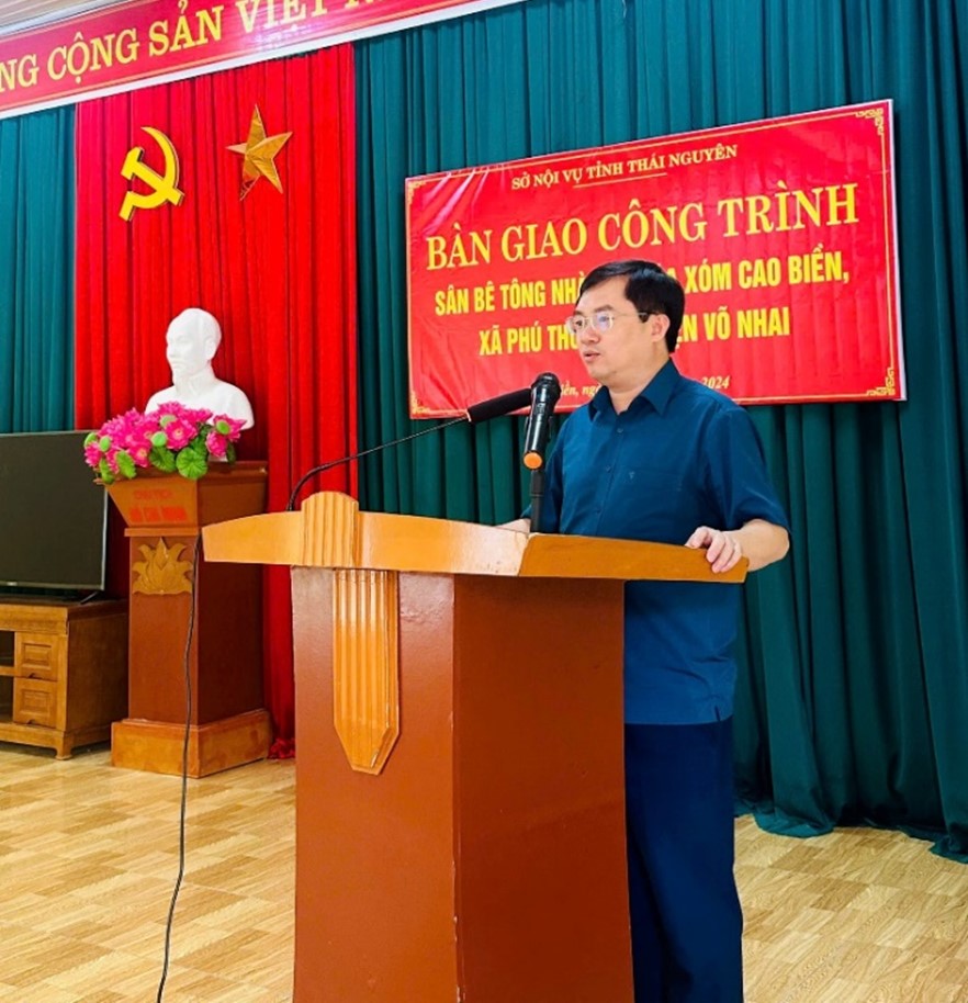 Sáng ngày 25/8/2024, Sở Nội vụ tổ chức trao tặng công trình, hỗ trợ xi măng xây dựng sân nhà văn hóa xóm đặc biệt khó khăn tại xóm Cao Biền, xã Phú Thượng, huyện Võ Nhai với diện tích 250m2, trị giá 40 triệu đồng.